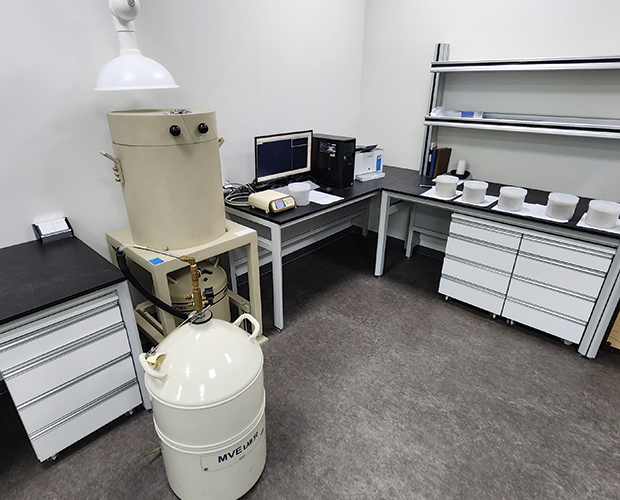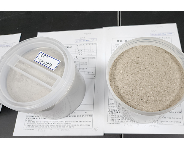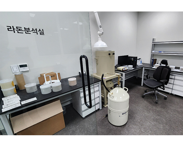 방사선, 방사능, 중성자 분야의 KOLAS 공인시험기관으로서, 건축 자재 라돈 저감 관리 지침에 따라 건축 내장재로 사용되는 천연석 기반 자재의 방사능농도(Ra-226, Th-232, K-40)를 분석하여 방사능 지수를 산출하는 업무를 진행하고 있습니다.